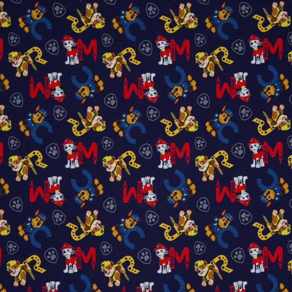 – Design: Charaktere wie Chase, Rubble und Marshall auf einem dunkelblauen Hintergrund mit Buchstaben