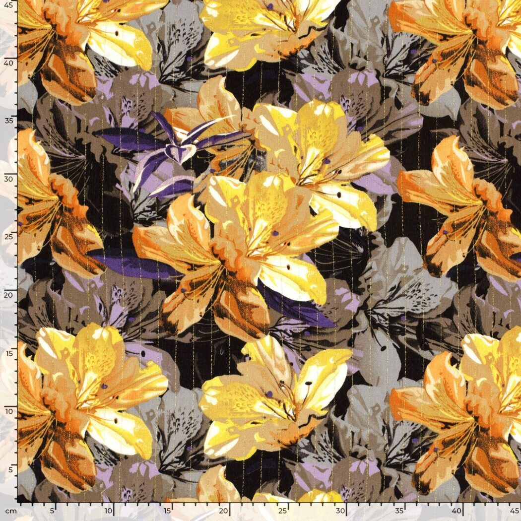 A great viscose fabric with lurex stripes. It consists of 99% viscose and 1% lurex. It is comfortable to wear. The fabric is wonderful for summer dresses.