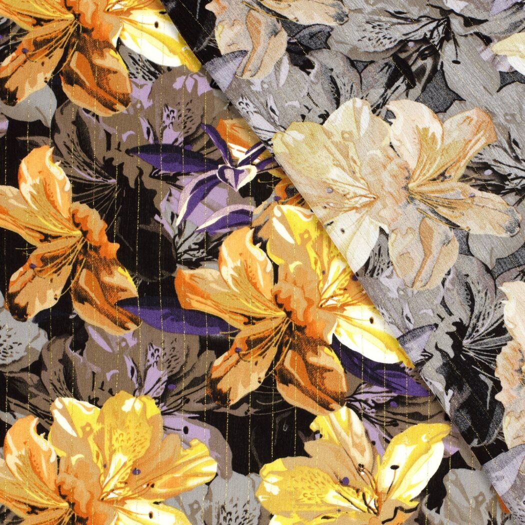 A great viscose fabric with lurex stripes. It consists of 99% viscose and 1% lurex. It is comfortable to wear. The fabric is wonderful for summer dresses.