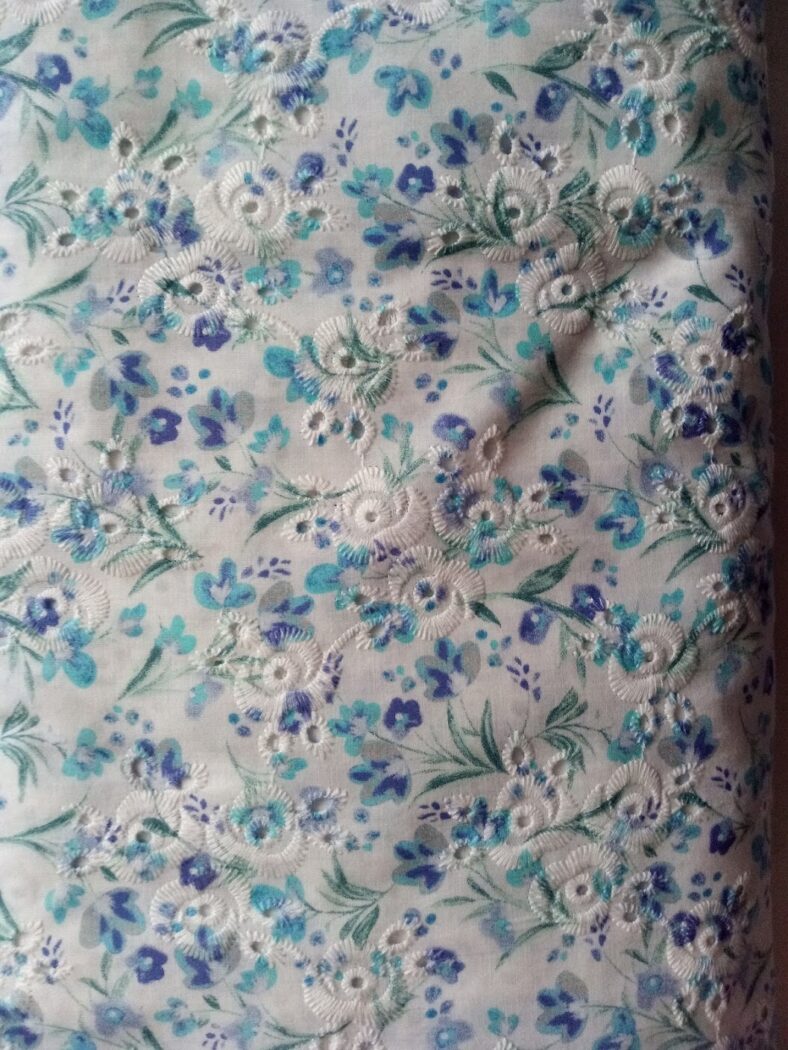 Cotton broderie anglaise with blue flowers