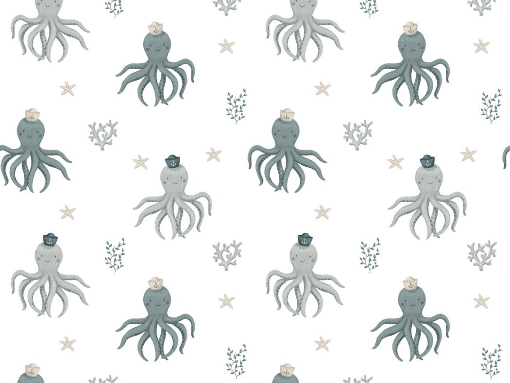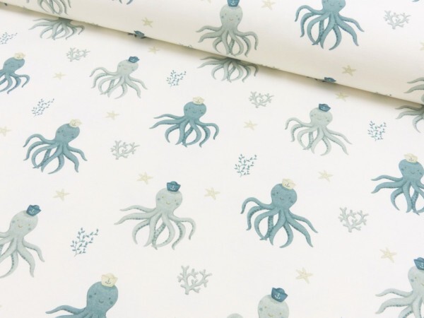 3 4/12ft x 4 11/12ft Cotton Jersey – Küstenkind Octopus – Metre 95% 5% El