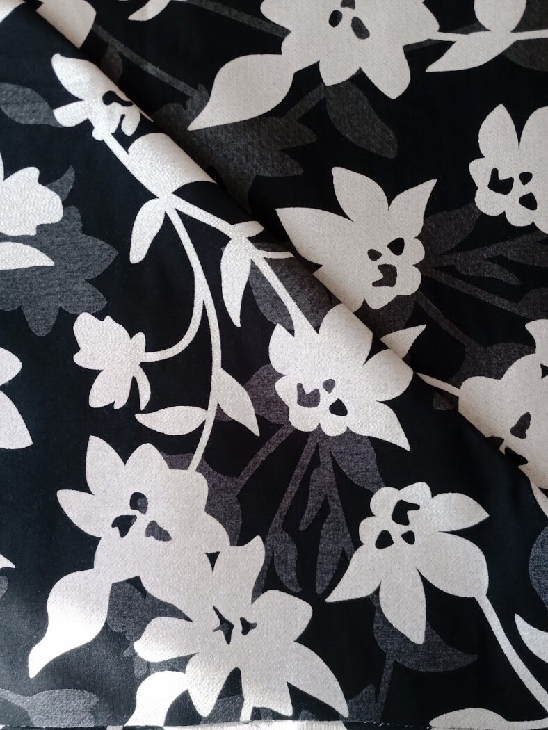 Schreibe die erste Rezension für „1m X 1,35m Jacquard Fabric Glittery White With Black Flowers“