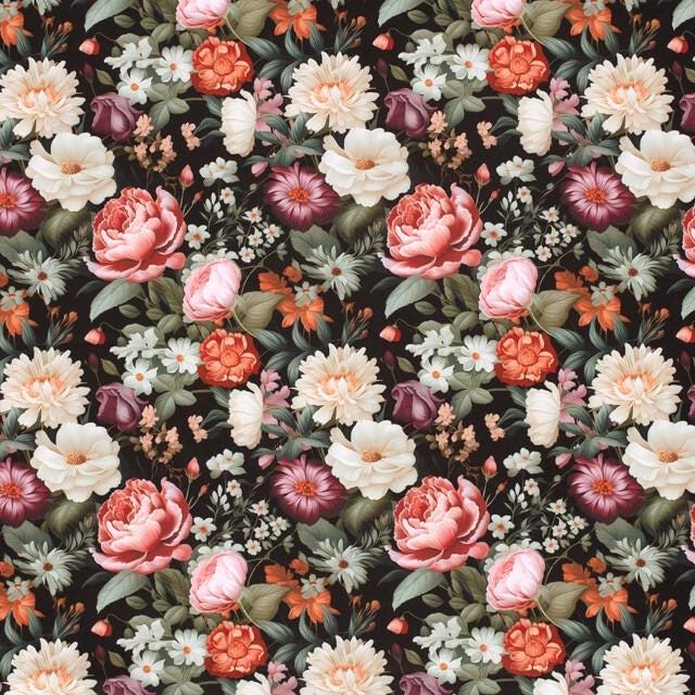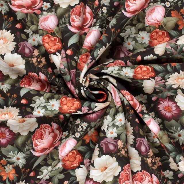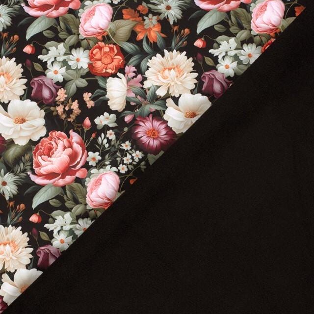 1m x 1,45m Softshell Blumen auf Schwarz Oeko-Tex Standard 100