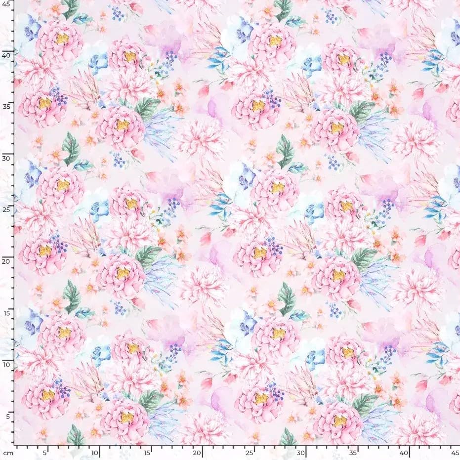 Ein wunderschöner Softshell mit Rosa Blütendruck. Ein perfektes Frühlingsmuster für die noch nicht so warmen Tage. Der Digitaldruck eigent sich perfekt zum Vernähen für Softshelljacken.