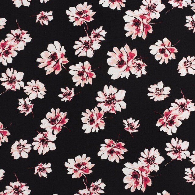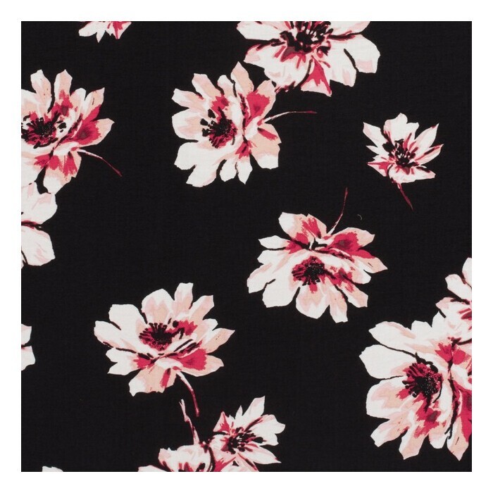 1M X 1,45M Viscosa Nailon Crepé Flores Negro