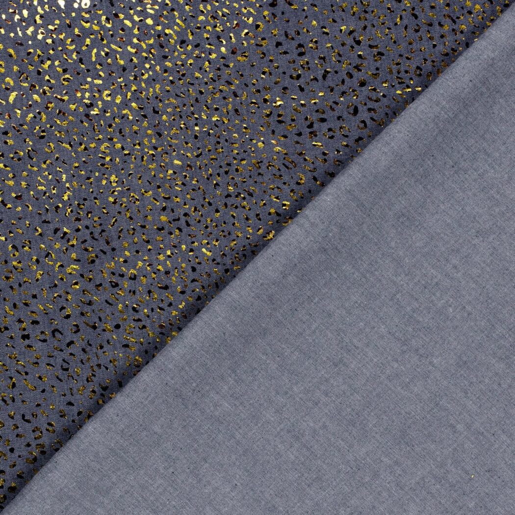 Jeansstoff mit Foliendruck im Leopardmuster Dunkelblau mit Gold 1m x 1,48m Meterware 100% Baumwolle 125/m² OEKO-TEX STANDARD 100 Du bekommst einen tollen Jeansstoff mit Foliendruck Gold. Das Stoff mit dem Leopardmuster eignet sich wunderbar für Jeansblusen, Jeanskleider oder Hosen. Hol dir diesen wunderbaren Stoff für dein nächstes Projekt!