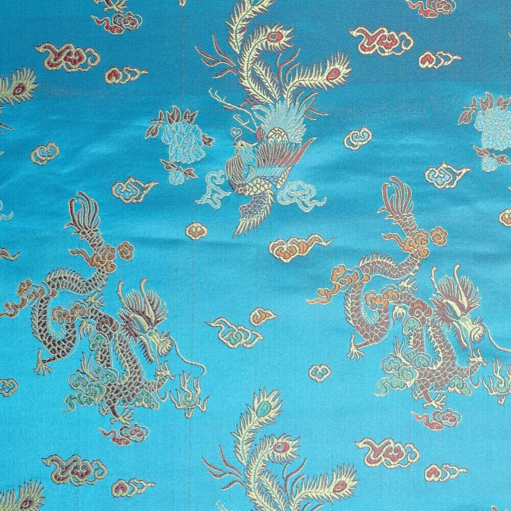Der Hellblaue Drachenbrokat schimmert und eignet sich perfekt für Kostüme, Feiertagsoutfits oder Kimonos. Der Drache schimmert zusätzlich und hebt sich auf dem Brokatstoff hervor. Möge der Drache mit dir sein. 🙂