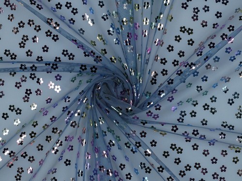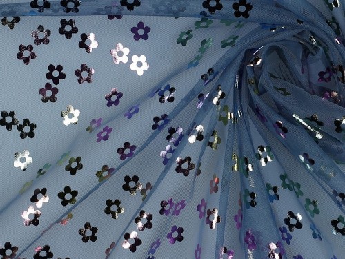 1m X 1,50m Flowers Tulle Blue Foil Shimmering Fine – Carnival, Clothes