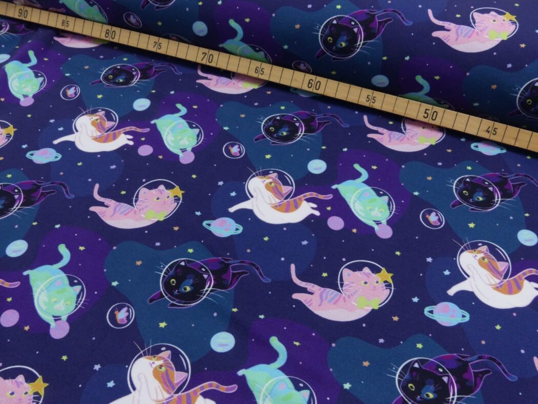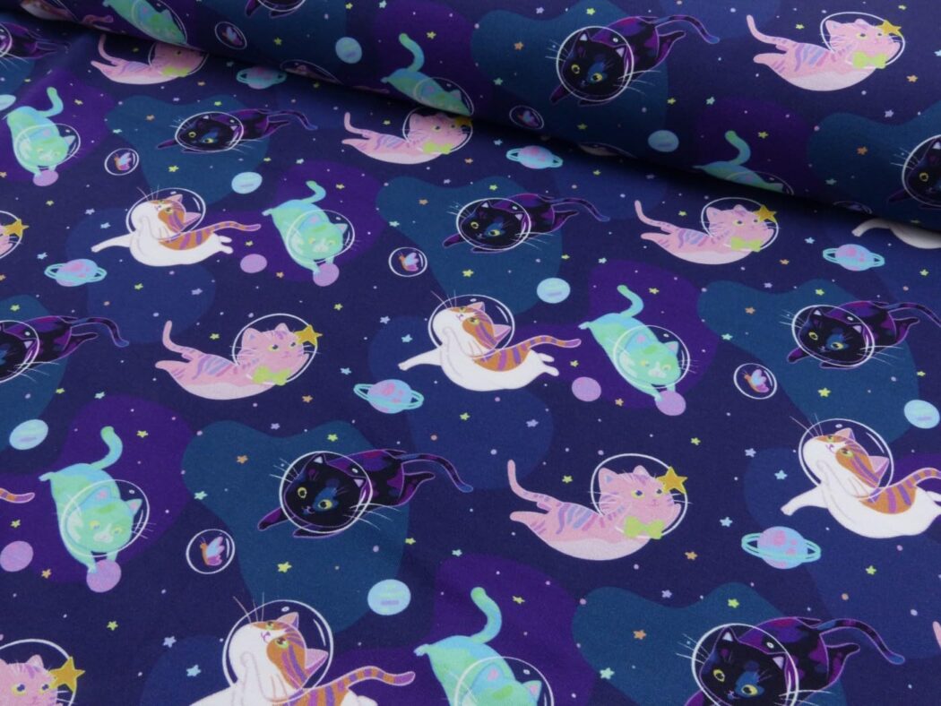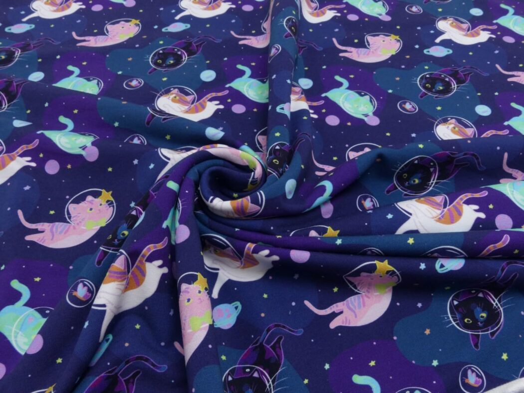 Diese Cosmic Cats katapultieren dich ins All voller Katzen. Nähe Kleider, Shirts oder Hosen aus diesem abgehobene French Terry. Dieser wunderbare Stoff eignet sich für Kinderkleidung und Katzenfans sowie alle anderen, die nach etwas außergewöhnlichem suchen.