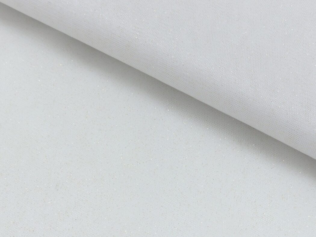 Du bekommst einen glitzernden weißen Tüll, ideal für Kleider und Röcke. Der Stoff eignet sich für Hochzeitskleider, Faschingkostüme oder Mädchen die einfach nur glitzern wollen. 🙂