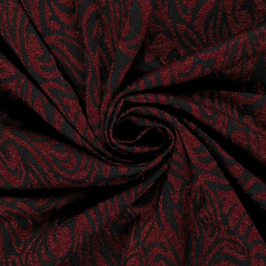 Jacquard Stoff Lurex Glitzernd Abstrakt Dunkelrot