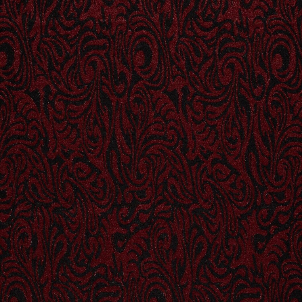 Dieser edle rote Jacquardstoff zieht alle Blicke auf sich. Glitzernde Lurexfähden heben die feinen, abstrakten Muster eindrucksvoll hervor und verleihen dem Stoff eine luxuriöse Note.