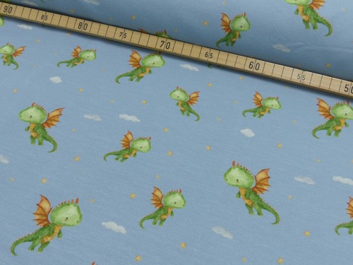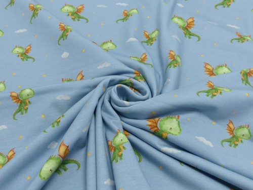 1M X 1,50M Jersey De Algodón Little Dragons – Impresión Digital De Dragones
