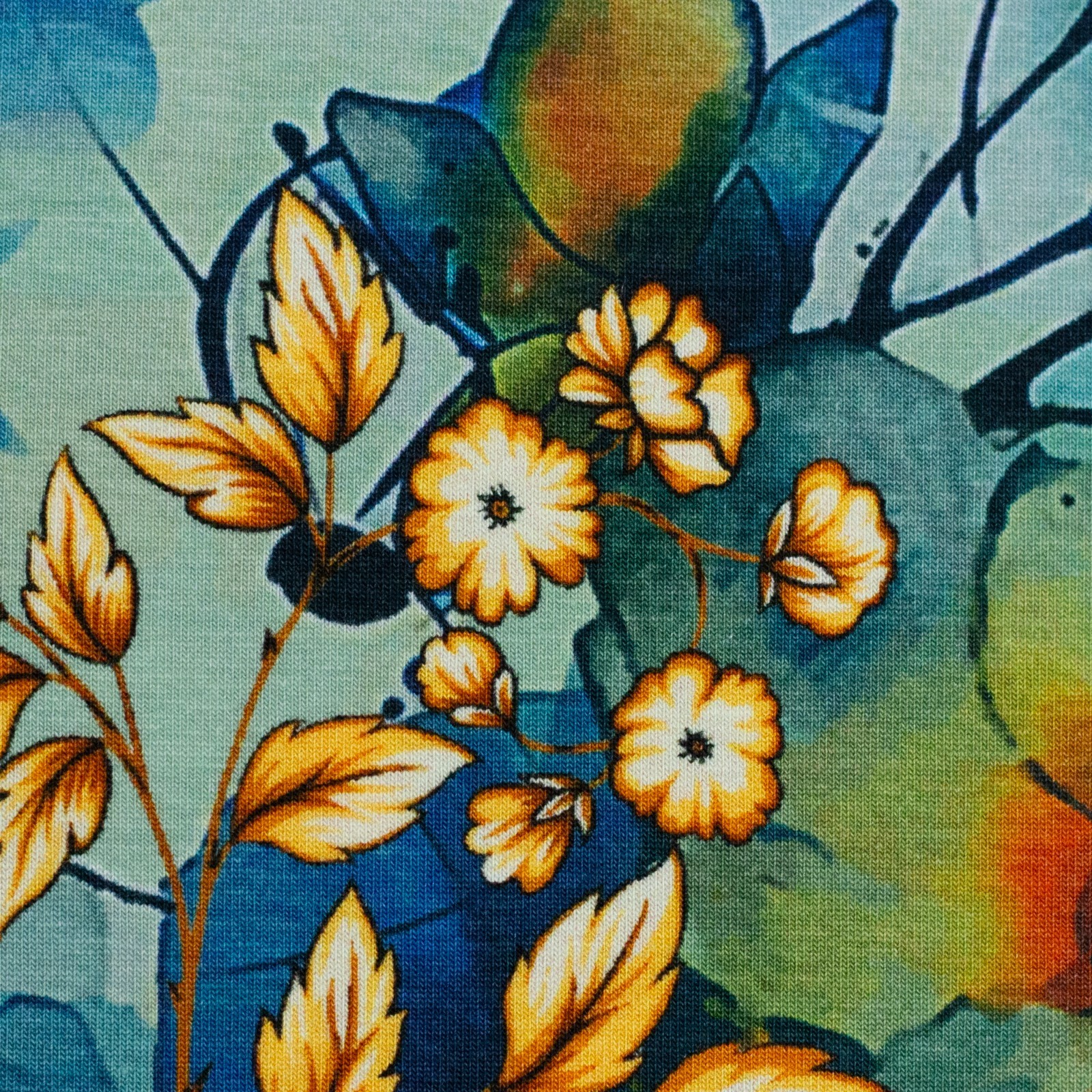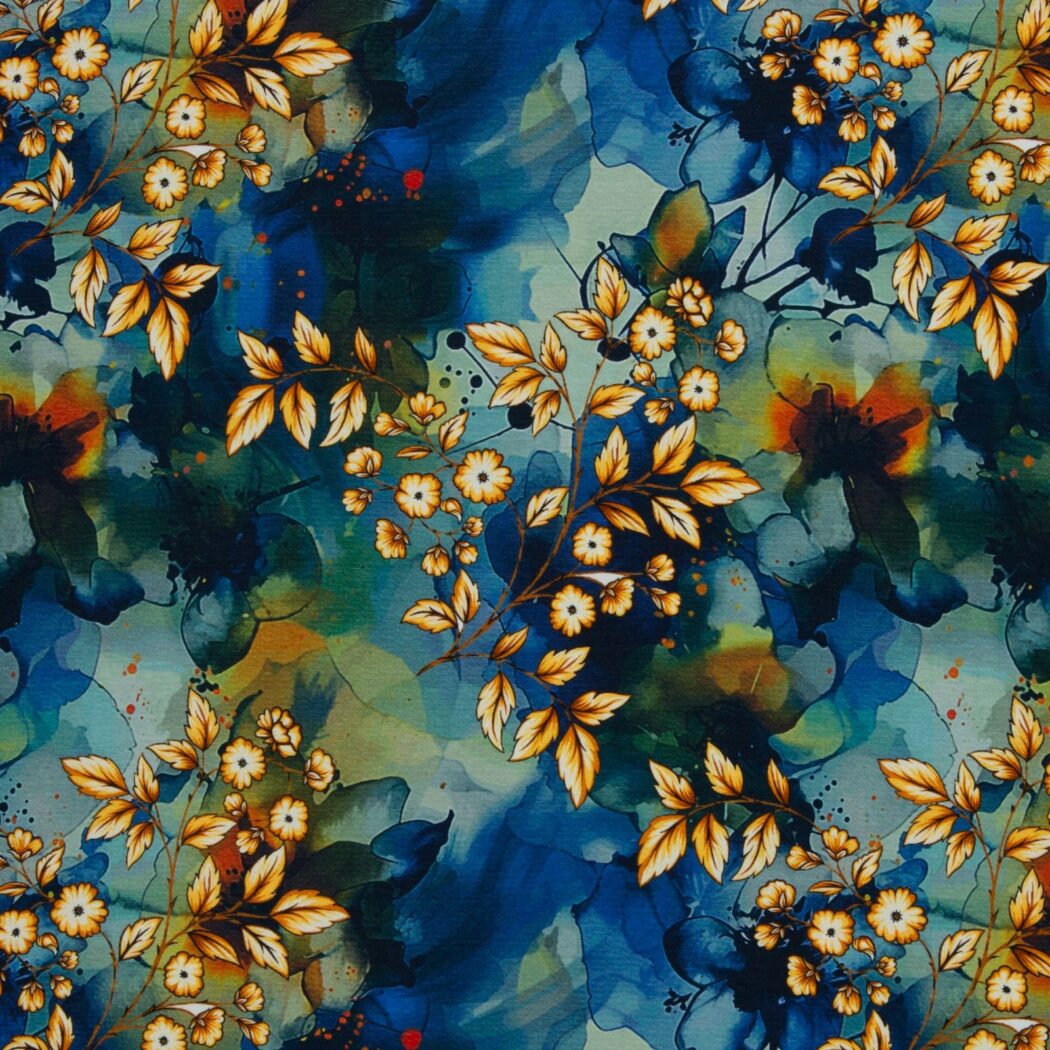 1M X 1,50M Jersey Modal Ulla Floral Vert Bleu