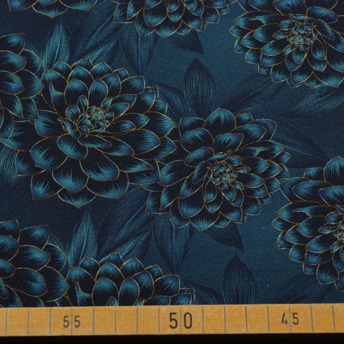 1mx1,50m 95% cotone 5% elastan 200 g/m² Riceverai una bellissima maglia di cotone con grandi fiori. È particolarmente indicato per magliette e abiti. Il colore scuro ti fa apparire elegante.