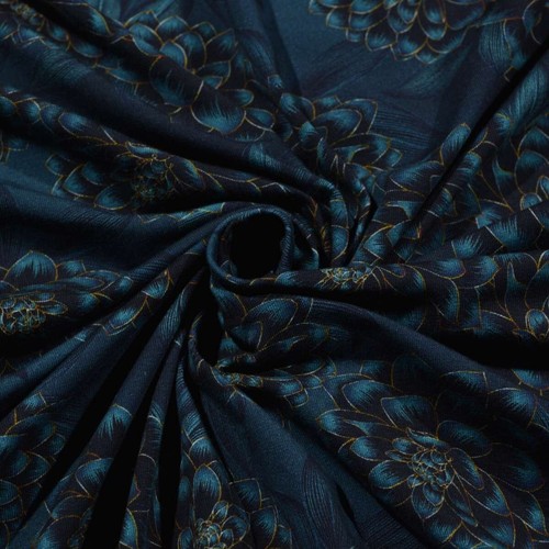 Riceverai una bellissima maglia di cotone con grandi fiori. È particolarmente indicato per magliette e abiti. Il colore scuro ti fa apparire elegante.