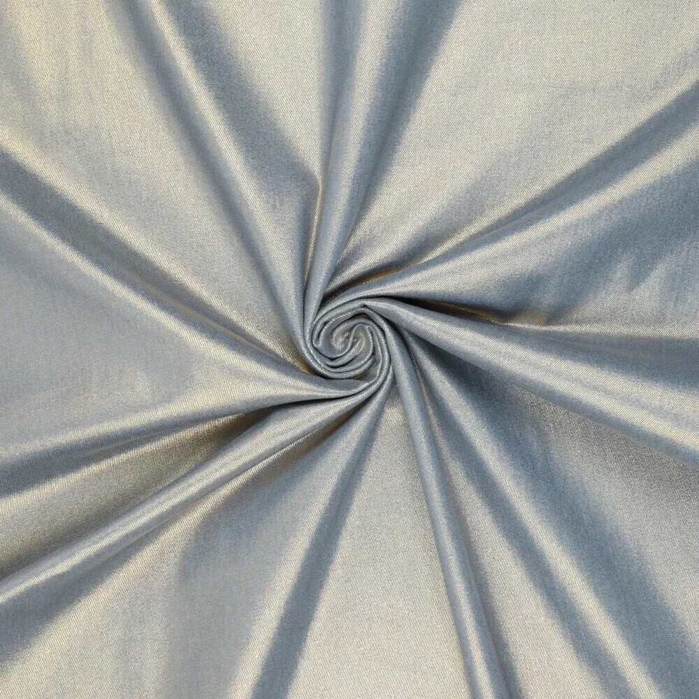 Du bekommst einen blauen schimmernden Jeansstoff aus 100% Baumwolle. Er ist perfekt für Hosen geeignet.