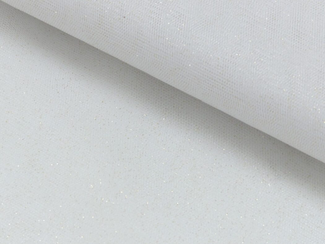Vous obtenez un tulle blanc scintillant, idéal pour les robes et jupes. Le tissu convient aux robes de mariée, aux costumes de carnaval ou aux filles qui veulent juste briller. 🙂