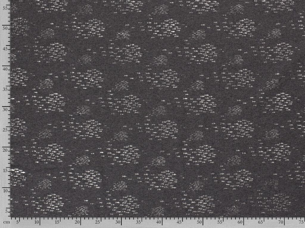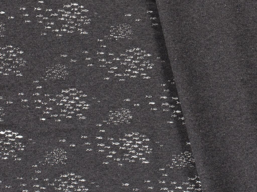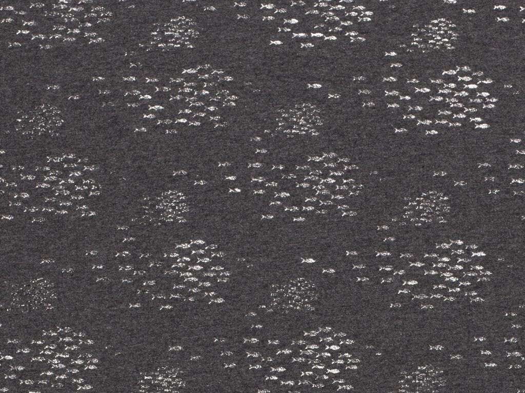 Dieser tolle Baumwolljersey kommt durch den Kontrast des Grau mit den silbernen Fischchen besonders gut zur Geltung. Er eignet sich hervorragend für T-Shirt oder Kleider mit einem dezenteren Ton, die das gewisse etwas haben.