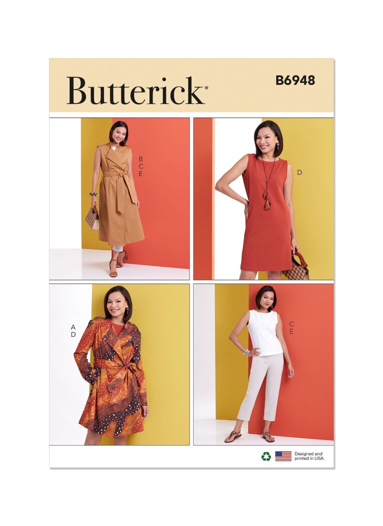 | item_name | Butterick Unisex Misses' Unlined Jacket Or Vest, Belt, Knit Top, Dress and Fitted Pants Schnittmuster-Set, Design-Code B6948, Mehrfarbig, 8-10-12-14-16 |
