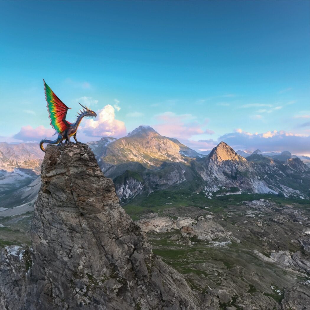 French Terry Panel Dragon With Rocky Landscape 1.40Cm X 1.40M