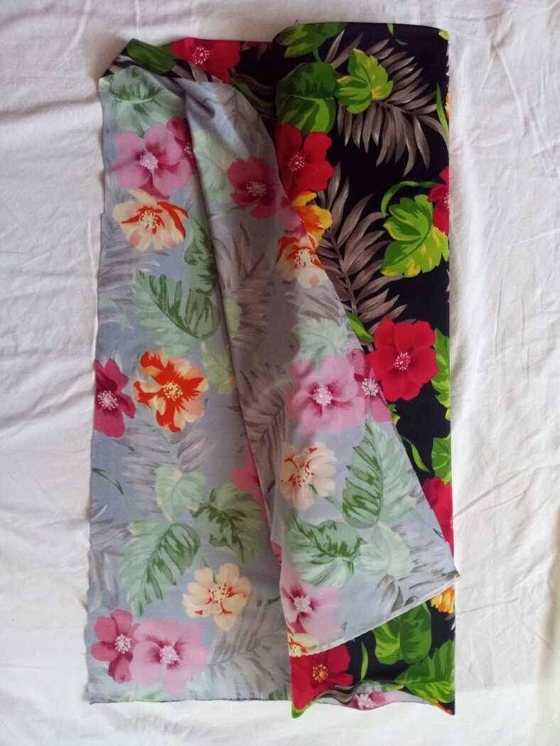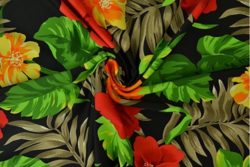 Wunderschöner geblühmter Badeanzugstoff bzw. Lycra mit kontrastreichen Blüten auf schwarzem Hintergrund.