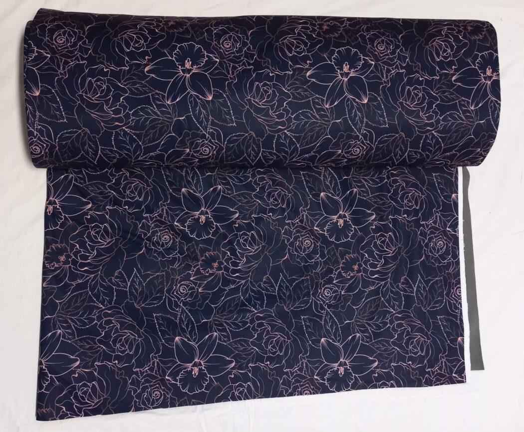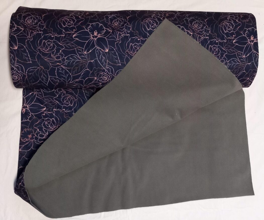 Entdecken Sie unseren hochwertigen Nano-Softshell Stoff mit einem bezaubernden Blumenmuster in Marine. Der Stoff präsentiert sich mit einer eleganten Kombination aus dunklem Marineblau als Grundton und feinen, rosafarbenen Linienzeichnungen von Blüten und Blättern. Mit den Maßen von 1m x 1,45m bietet dieser Polyester-Softshell die perfekte Größe für vielfältige Nähprojekte. Der Stoff zeichnet sich durch seine charakteristische Nano-Softshell-Beschaffenheit aus, die ihn besonders robust und gleichzeitig angenehm weich macht. Ideal für die Herstellung von Jacken, Taschen, Outdoor-Accessoires und anderen strapazierfähigen Projekten. Die maschinelle Reinigung ist problemlos möglich. Der Stoff wird nach Bestellung individuell zugeschnitten und ist nach dem Oeko-Tex Standard 100 geprüft. Die Kombination aus Funktionalität und stilvollem Design macht diesen Stoff zu einer ausgezeichneten Wahl für Ihre nächsten Nähprojekte.