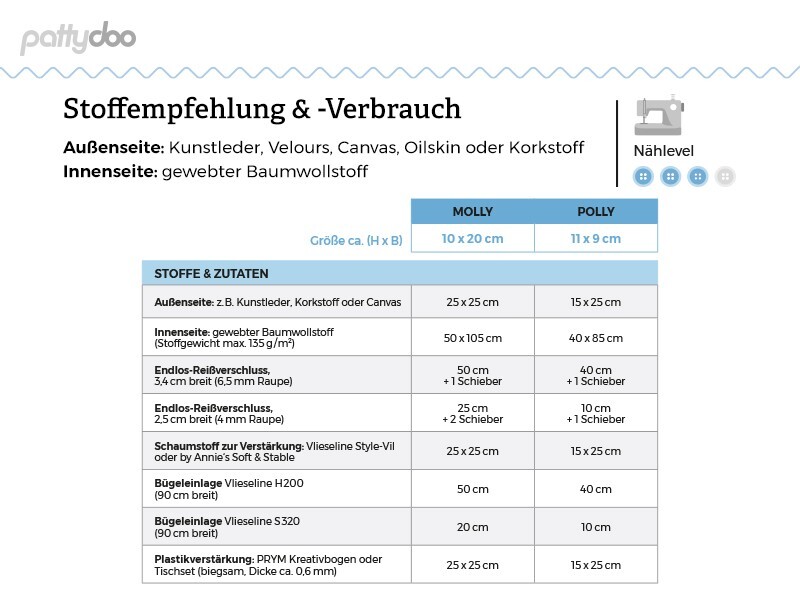 Patrón de costura de cartera en 2 tamaños „Molly & Polly“