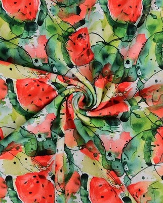 Preorder 1m X 1.50m Jersey De Algodón Acuarela Sandía Roja