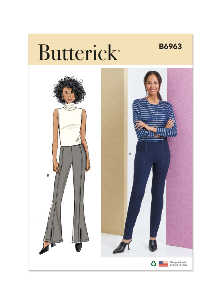 Mit Butterick B6963 nähst du dir eine moderne Hose mit schlanker Silhouette. Der Schnitt sitzt körpernah und bringt deine Beine optisch in Form, ohne dabei steif zu wirken. Ideal, wenn du ein vielseitiges Basic suchst, das sich immer wieder neu kombinieren lässt.