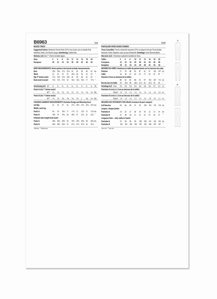 Die Anleitung ist klar aufgebaut und begleitet dich Schritt für Schritt. Wenn du bereits erste Näherfahrungen gesammelt hast, gelingt dir mit Butterick B6963 eine Hose, die sauber verarbeitet wirkt und lange Freude macht.