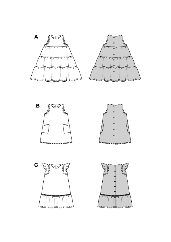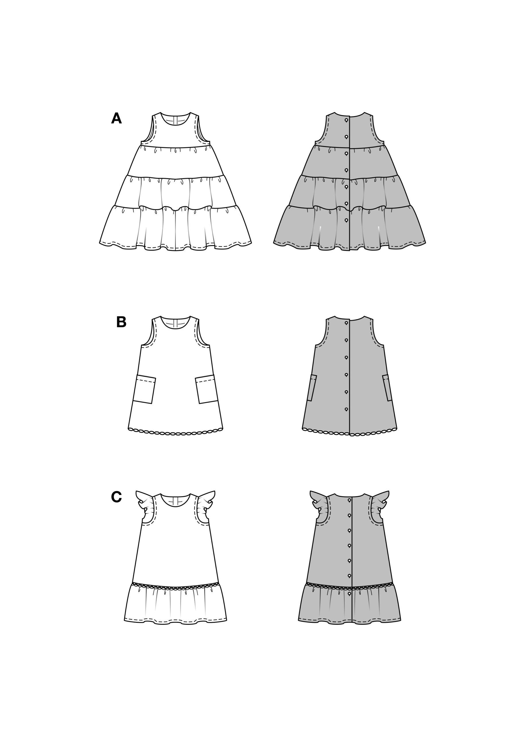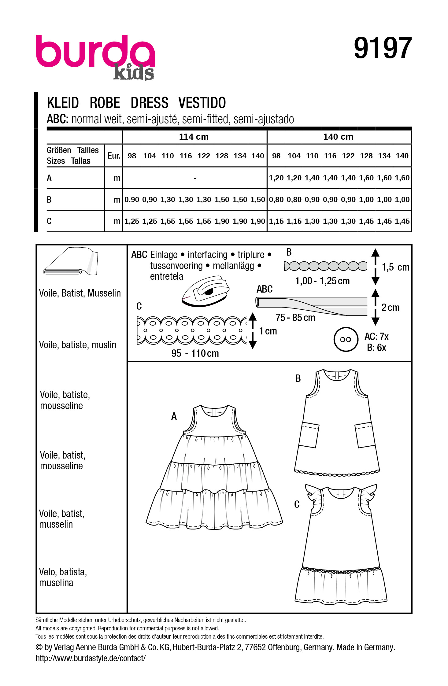 Schnittmuster Kleid Burda Kids 9197 US 3-10 (Gr. 98-140) Deutsche Anleitung