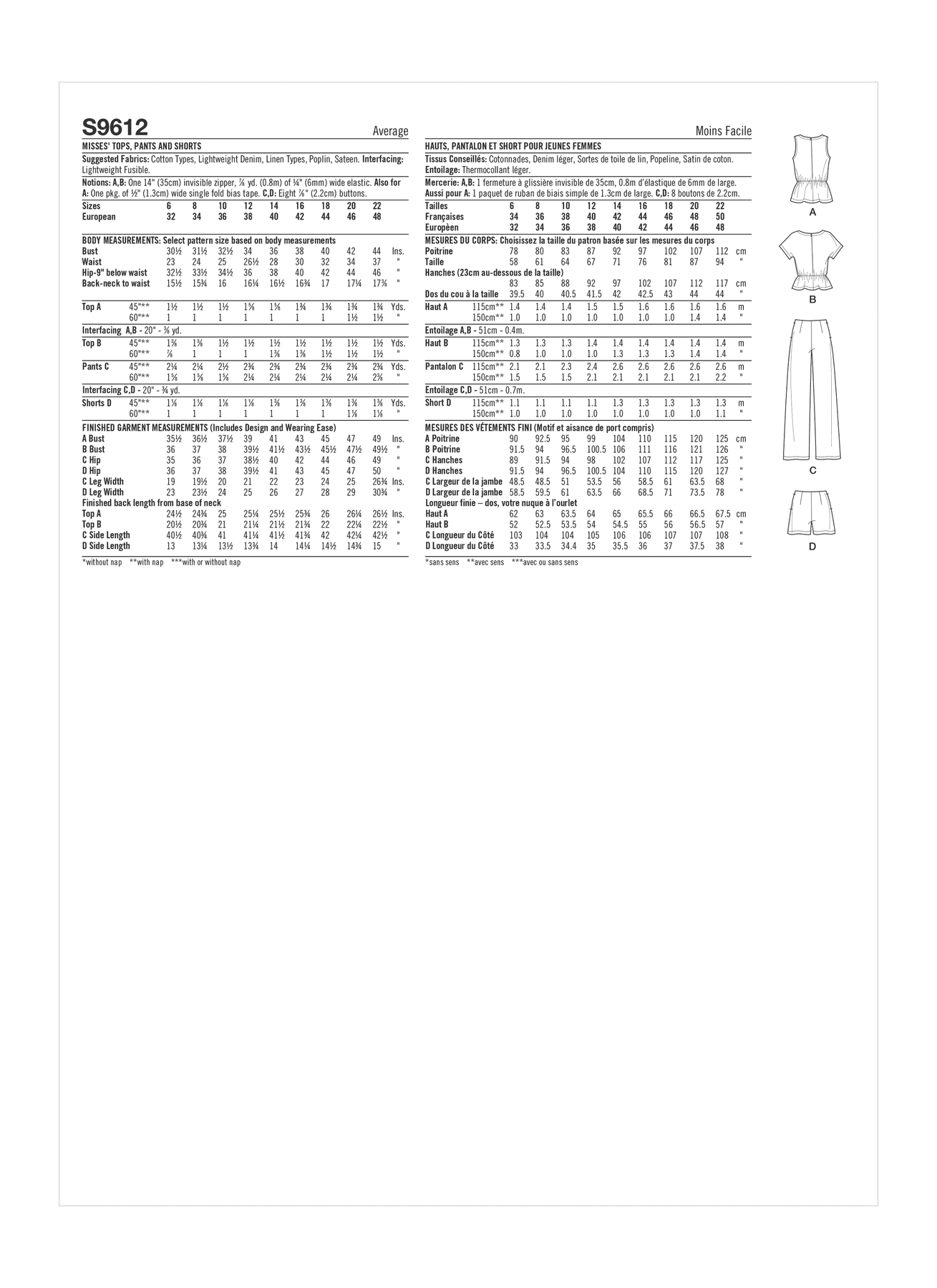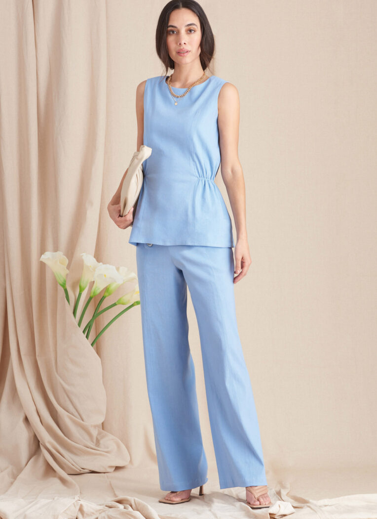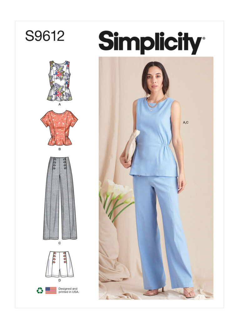 Mit dem Simplicity S9612 nähst du ein elegantes Outfit mit vielen Kombinationsmöglichkeiten. Das Schnittmuster umfasst Top, Hose und Shorts und eignet sich perfekt für moderne Freizeit- oder Businesslooks.