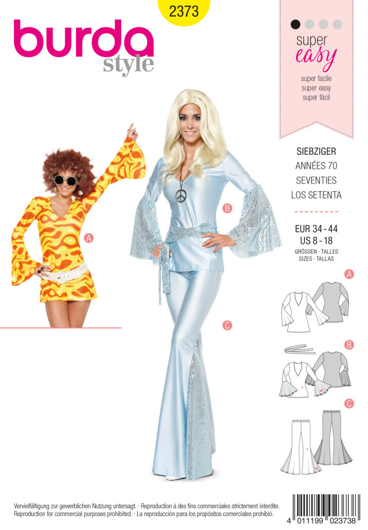 Schnittmuster Siebziger Burda 2373 US 8-18 (Gr. 34-44) Deutsche Anleitung