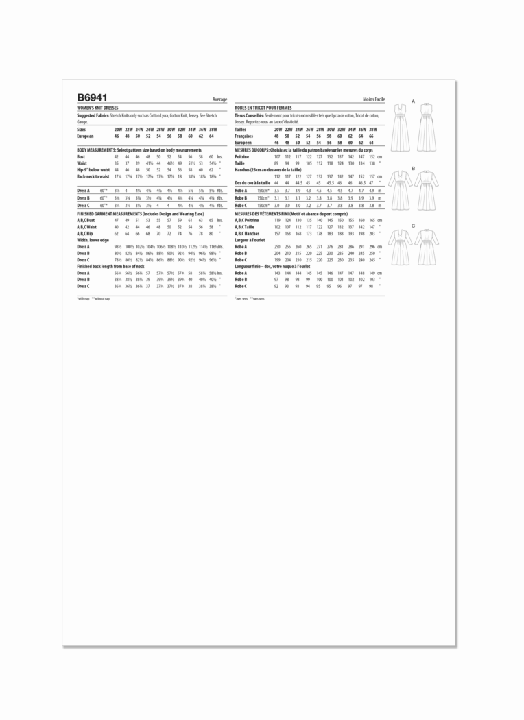 Schnittmuster Strickkleid Butterick B6941 W2 20W-28W (Gr. 46-54) Dt. Anleitung