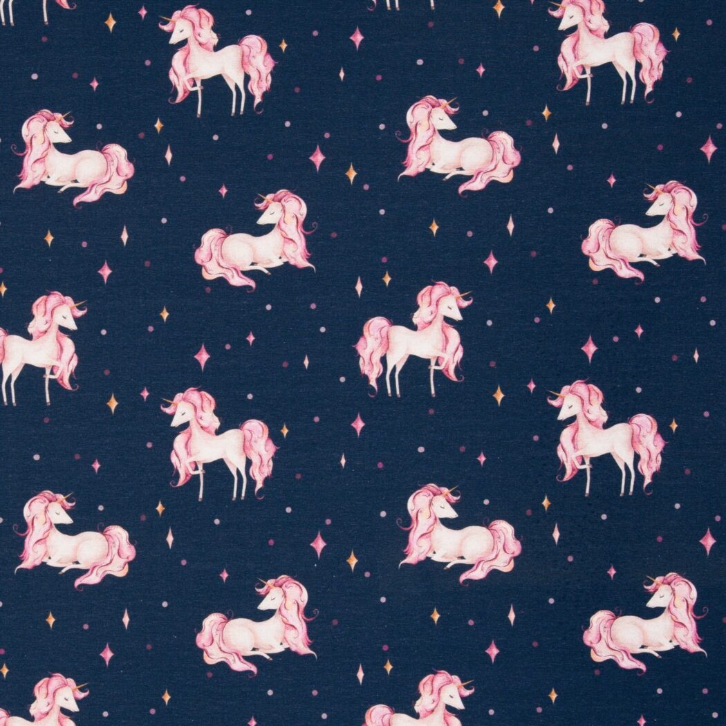 Swafing Cotton Jersey Unicorn Dress Fabric Dark Blue 4 m x 1.50 m Oeko-Tex