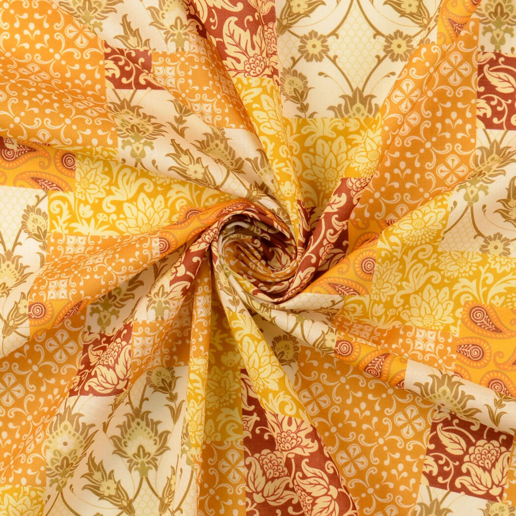 Baumwoll Popeline Stoff Paisley Gelb