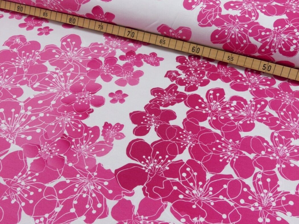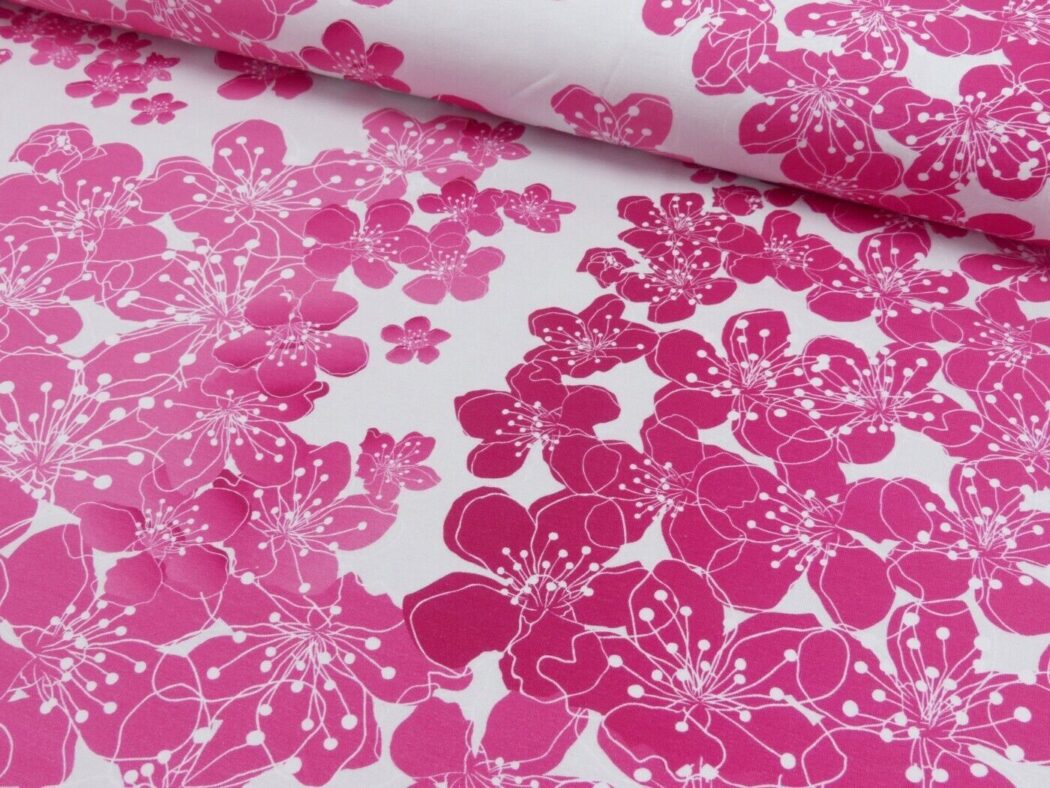 Du bekommst einen schönen weichen Baumwolljersey, mit dem du T-Shirts, Kleider und Hosen nähen kannst. Das Muster besteht aus kleine niedlichen Meerjungfrauen.