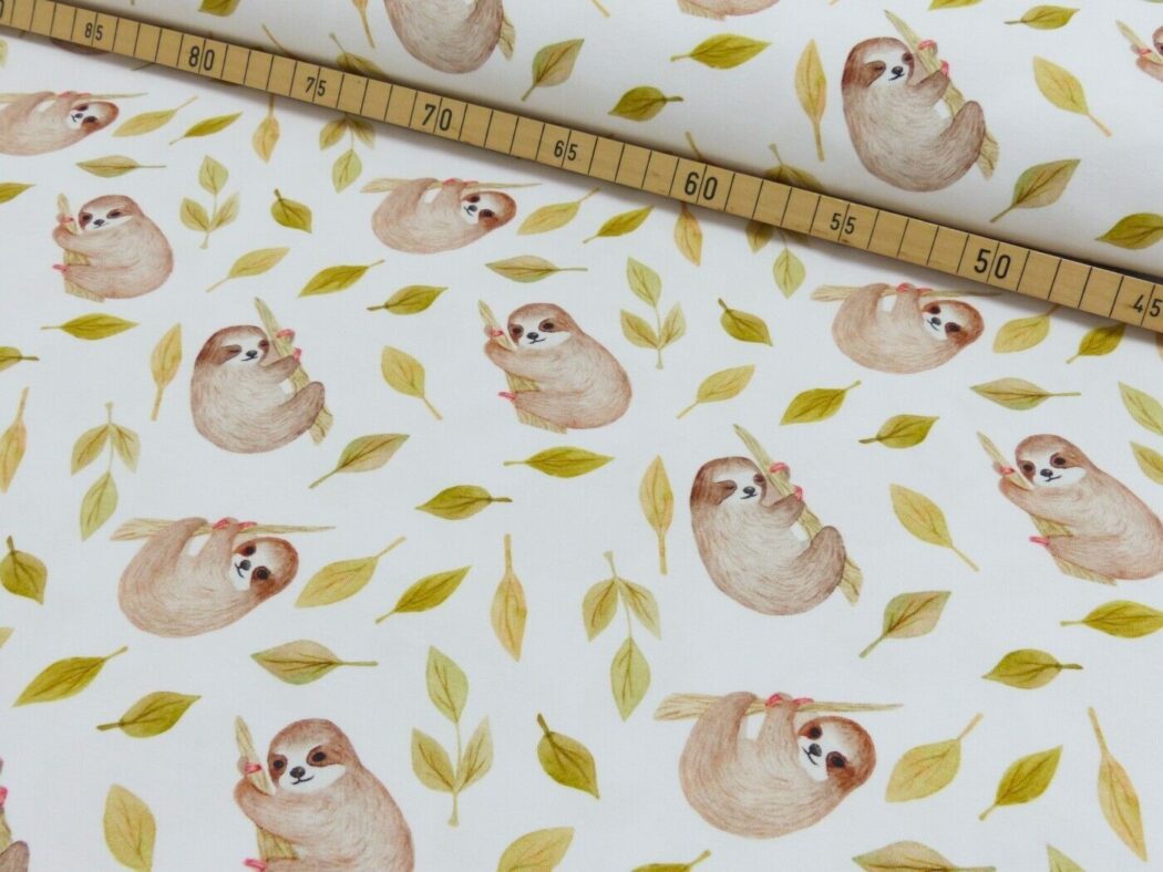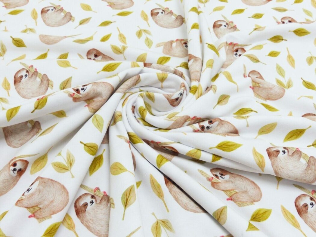 Du bekommst einen schönen weichen Baumwolljersey, mit dem du T-Shirts, Kleider und Hosen nähen kannst. Das Muster sind viele Quallen.